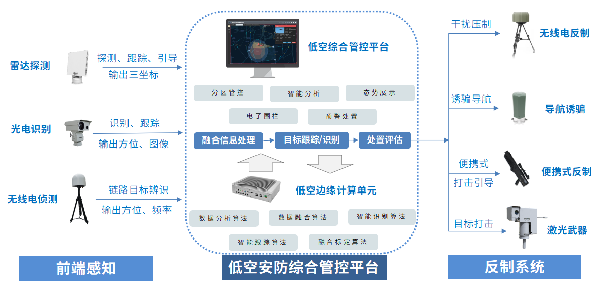 慧爾視“天羅3號(hào)”系統(tǒng)構(gòu)建“遠(yuǎn)、中、近”三層防御體系,并實(shí)現(xiàn)多元感知和多元打擊閉環(huán)方案。